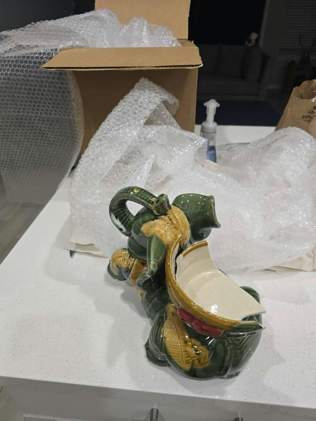 This item im sure would have been perfect, but it arrived broken! I know its probably the shipping company's fault but, I truly hope the Elephant will be replaced.