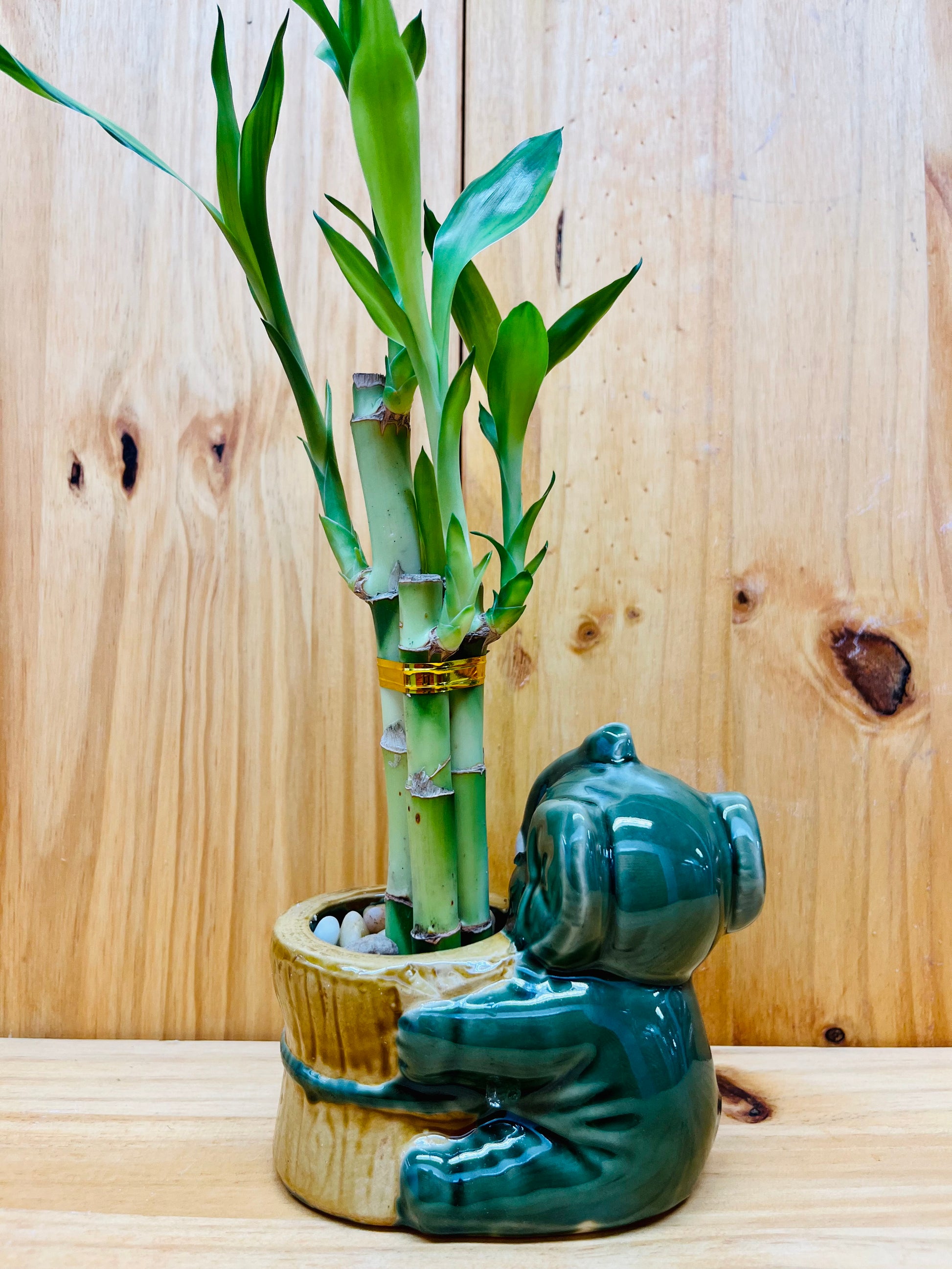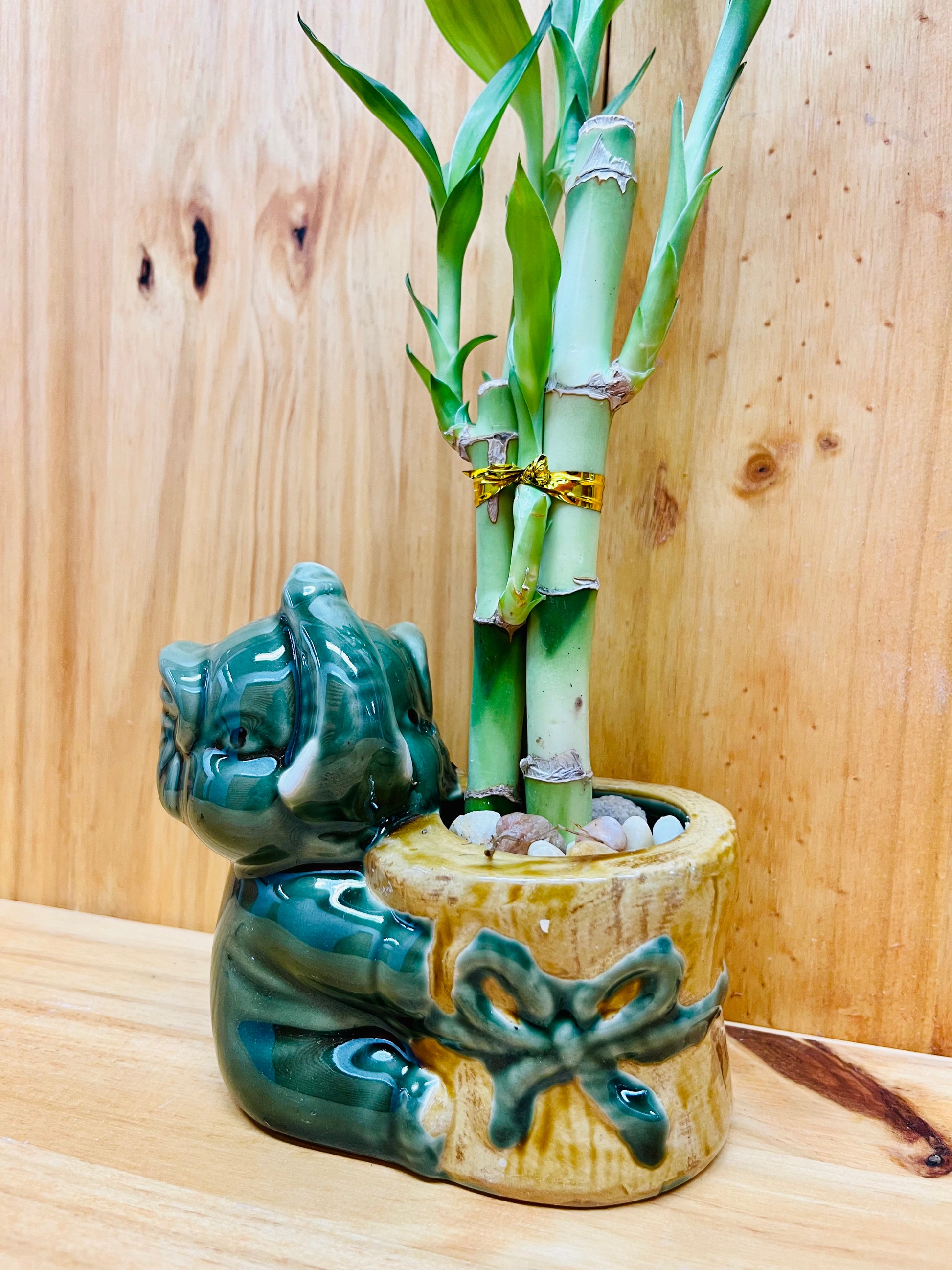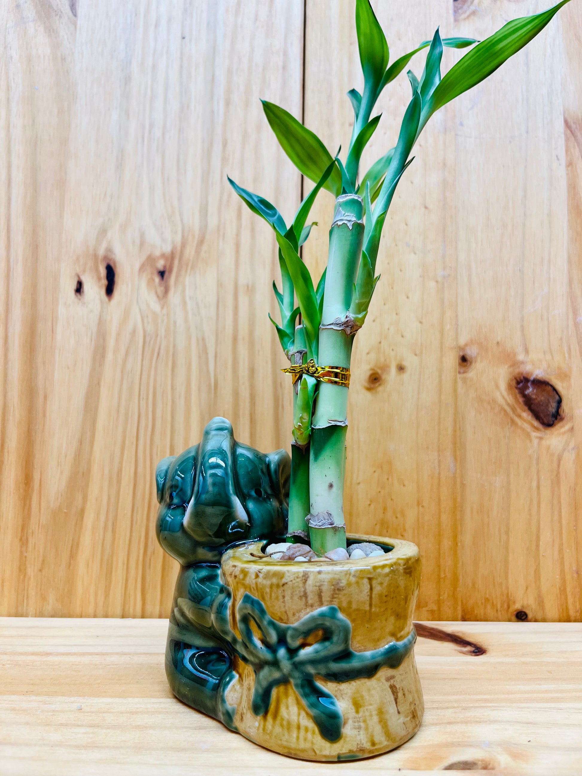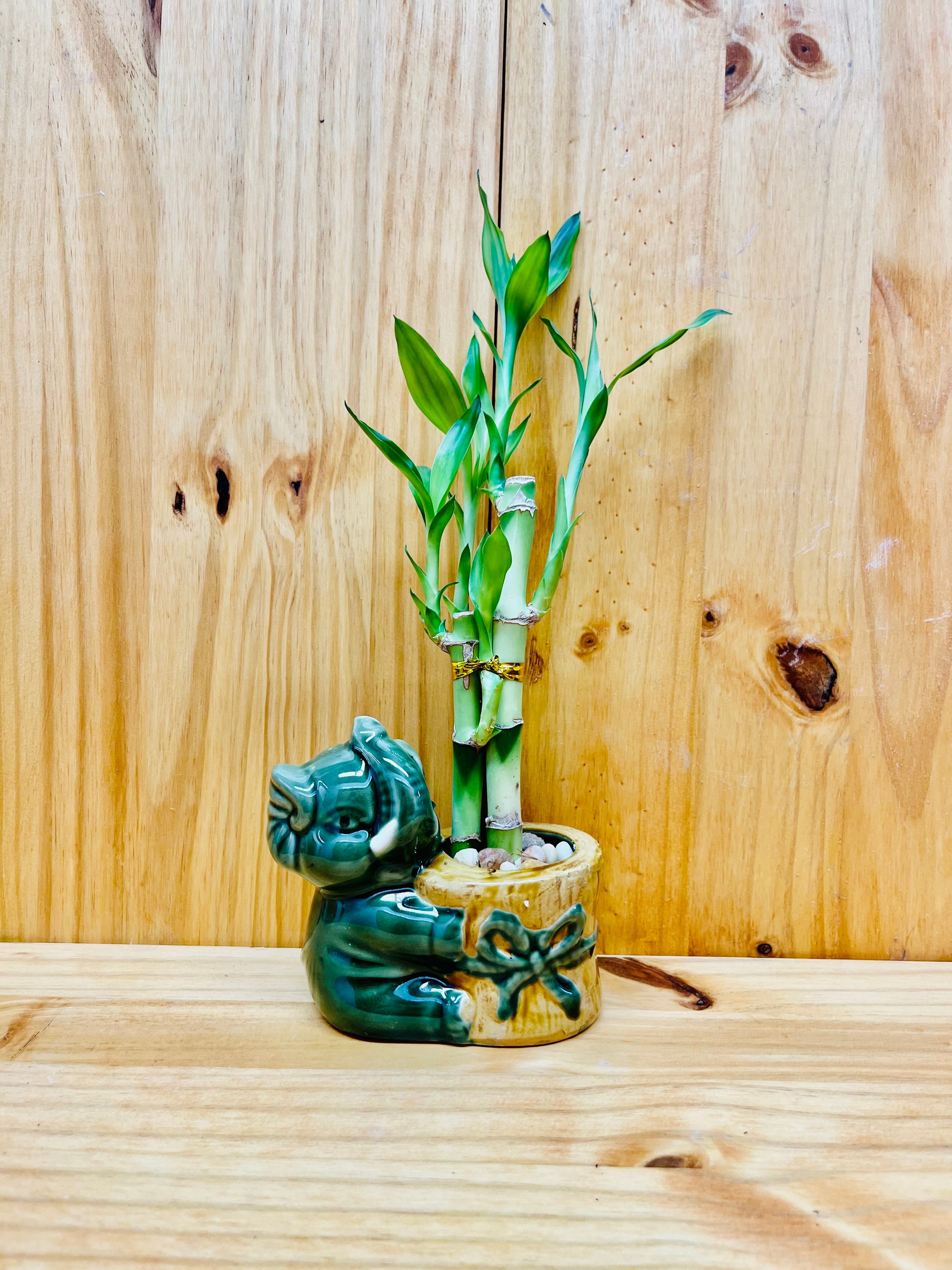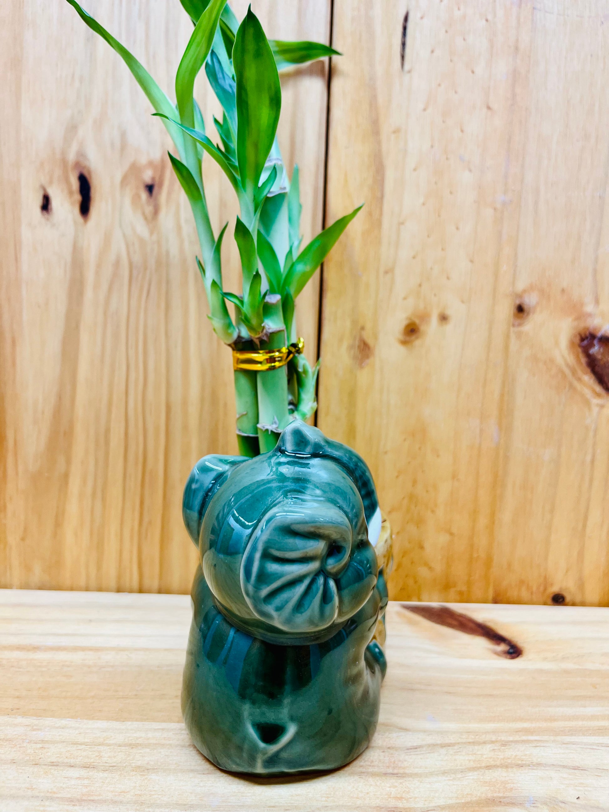 Lucky Bamboo in Ceramic Elephant Vase 3 Stem 6”6”8” Bamboo